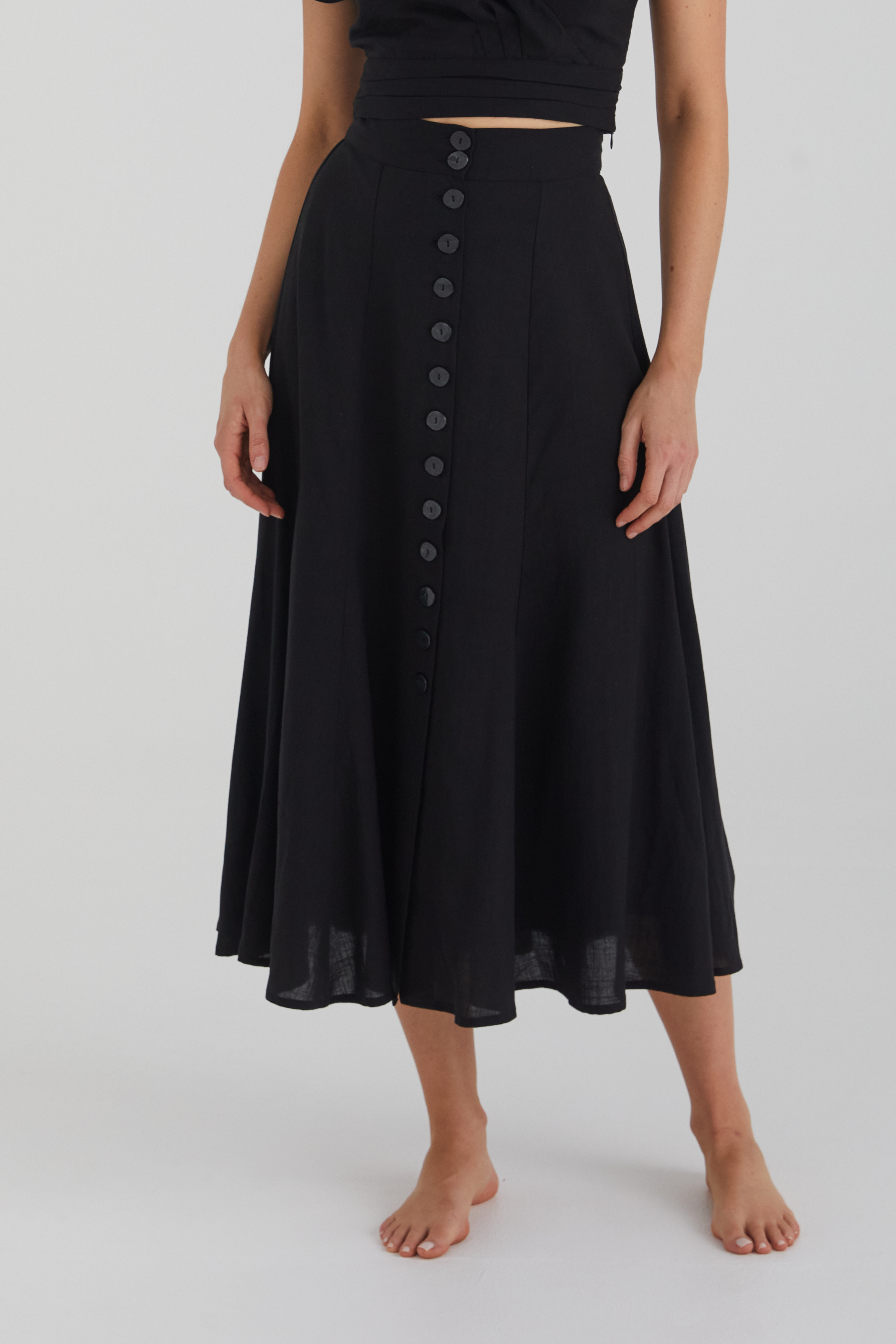 Timeless and feminine, the Frenchie Skirt was designed to be a summer staple. Its soft A-line silhouette is made for movement and flow on the hottest days. Constructed from a gorgeous linen blend, with functional bespoke buttons down the front, Frenchie can elevate a t-shirt or finish off a polished look when teamed up with the Frenchie Top.