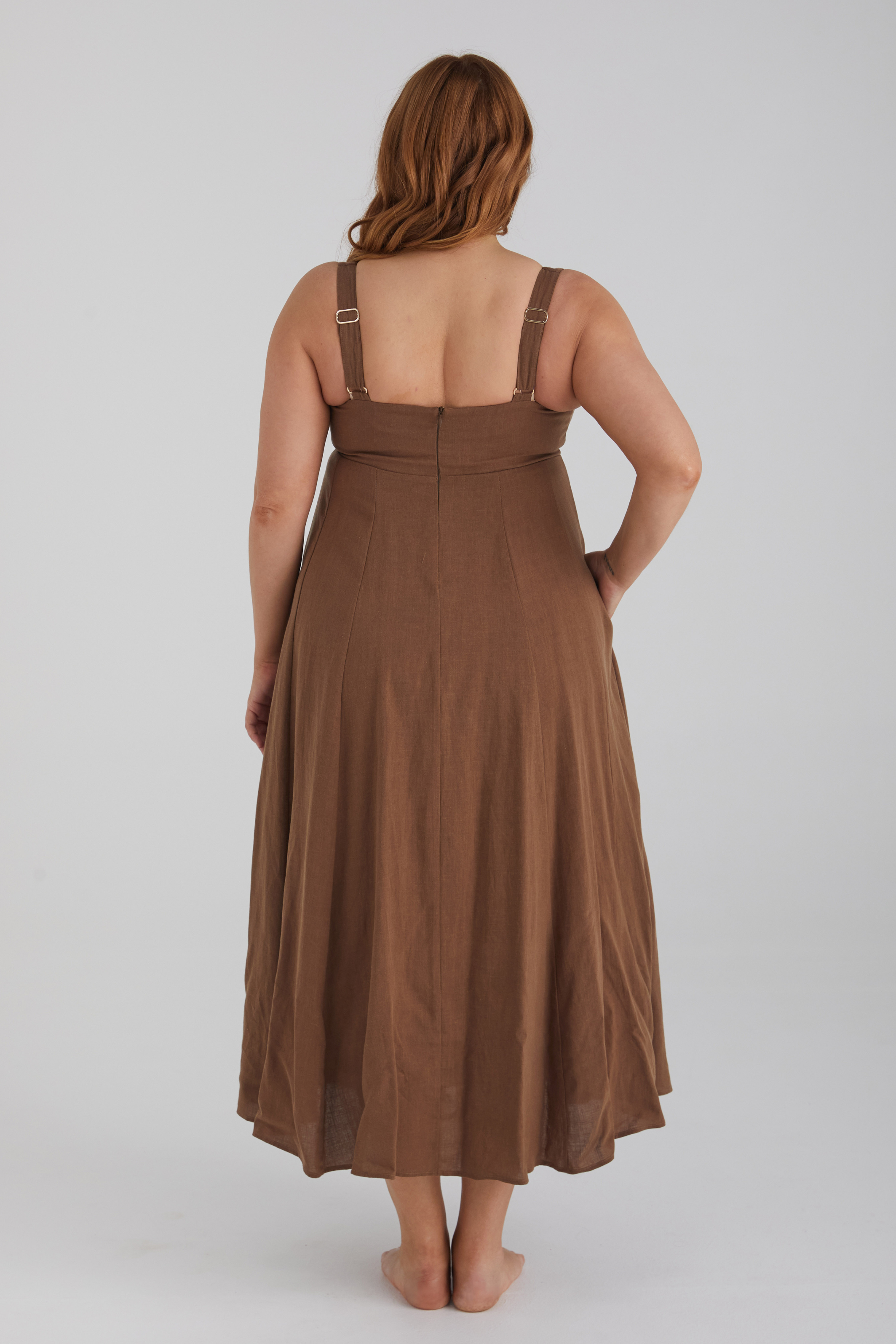 It features adjustable straps to fine-tune your fit, a full lining, and a gorgeous linen blend construction – plus, pockets!