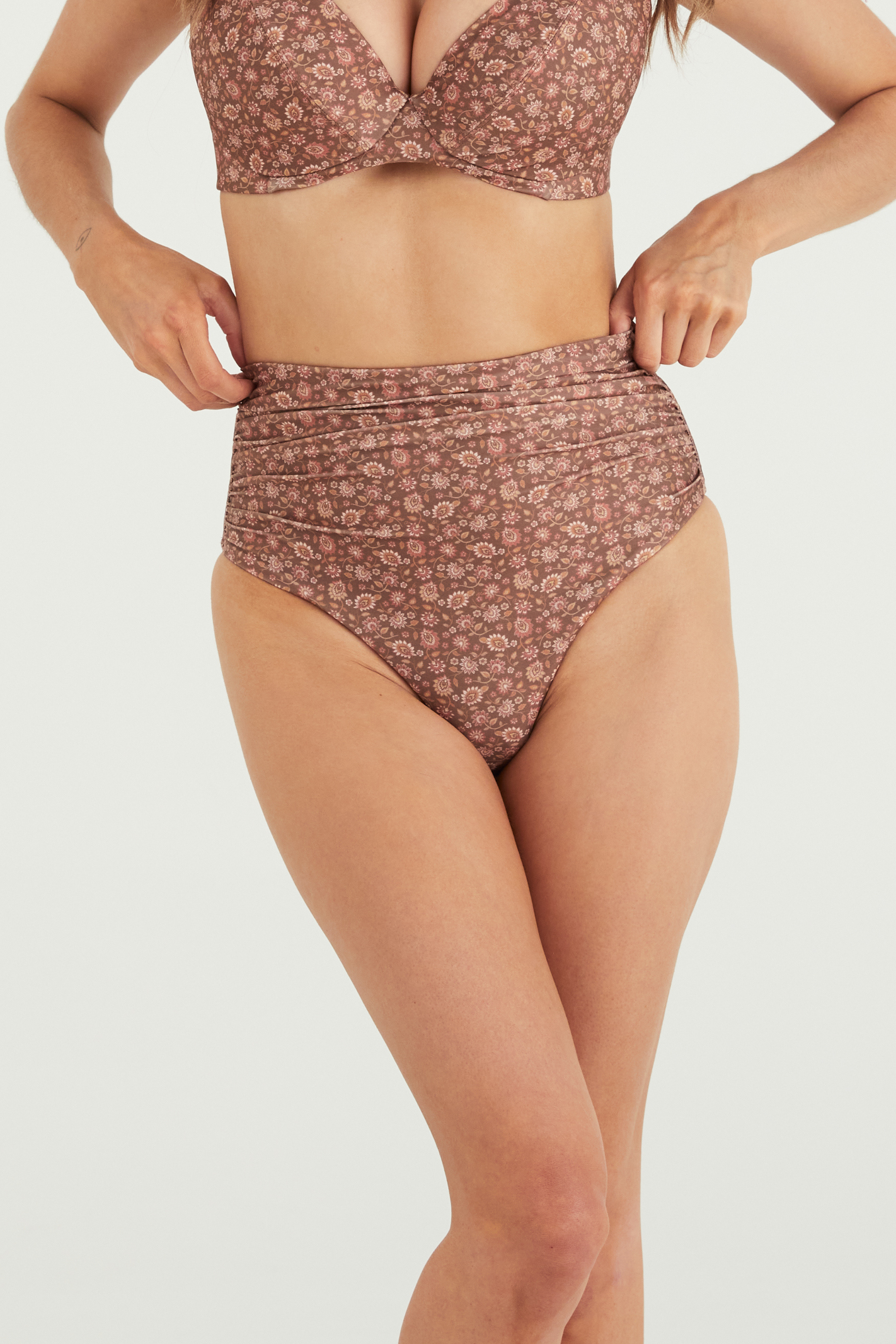 Zoe has a gorgeous high-cut leg (which can be worn lower on the leg if you’d prefer) to accentuate your curves. Our beautiful, soft ruching feature across the front panel is the perfect minimalist detail.